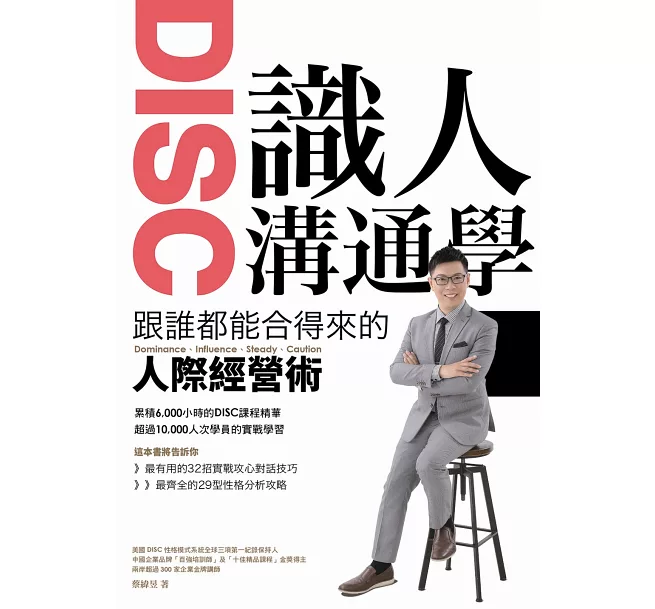 第三章開始用DISC 人格特質做為輔助工具,幫助大家找出自己的成功及失敗基因,期中會附有DISC 人格特質基礎工作版測驗的題目,讓大家可以快速瞭解自己的DISC 類型,並學習第四、五章的實作方法與技巧。